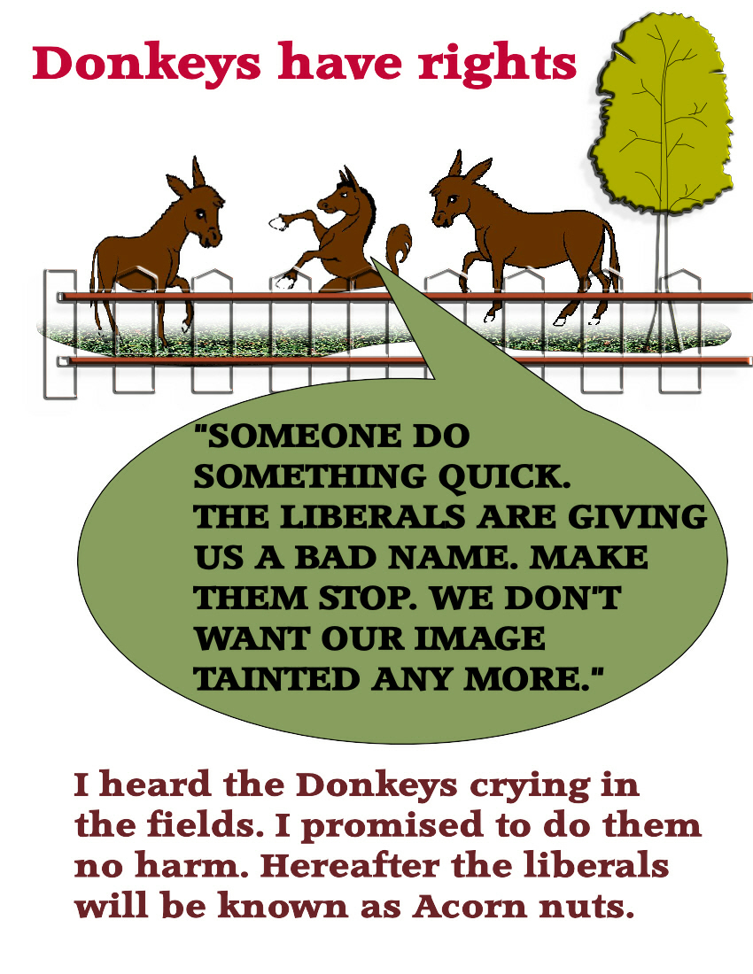 THE USE OF ACORN NUTS SIGNIFY LIBERALS AS THE DONKEYS WERE COMPLAINING THEIR IMAGE WAS BEING TAINTED. [see #22]